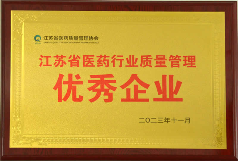 江蘇省醫(yī)藥行業(yè)質(zhì)量管理優(yōu)秀企業(yè)