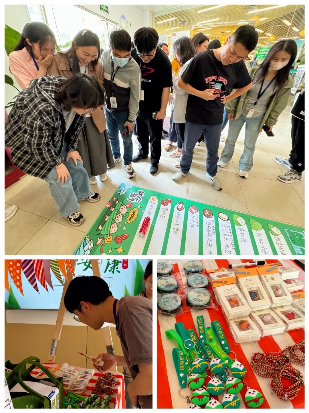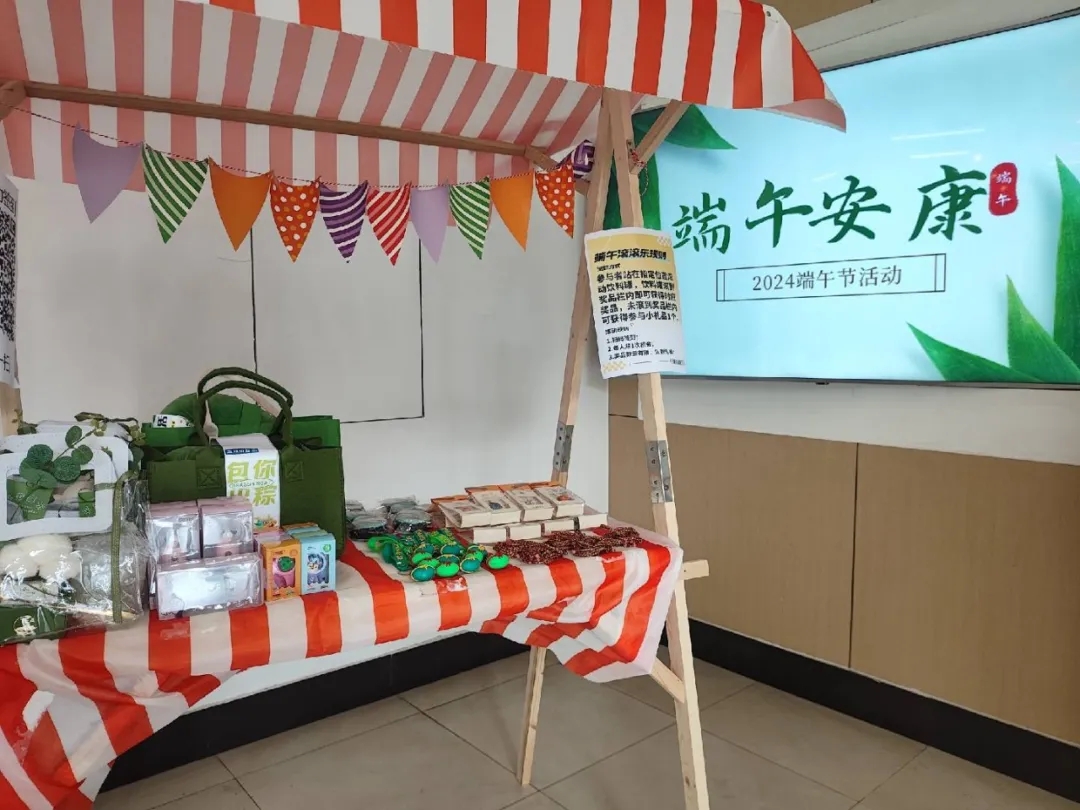 “端午滾滾樂”:食堂入口處,鋪上了一塊兩米長(zhǎng)的地毯,裝點(diǎn)著可愛的小粽子,大小相同的空白窗格像階梯一樣列隊(duì)在地毯中央。員工們紛紛加入游戲,站在指定位置,將飲料罐滾動(dòng)至相應(yīng)窗格中,獲得驚喜獎(jiǎng)品;未能獲獎(jiǎng)的員工,也都領(lǐng)取到端午節(jié)五色繩。海陵工會(huì)為員工們準(zhǔn)備了端午大禮包、補(bǔ)水儀、端午掛飾、零錢包等眾多獎(jiǎng)品,活動(dòng)現(xiàn)場(chǎng)熱鬧非凡,員工們積極參與游戲,共祝端午安康。