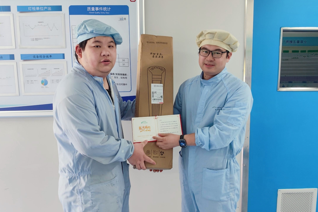 熱心腸的他,用積極樂(lè)觀的態(tài)度溫暖著車(chē)間的每一位伙伴。車(chē)間改造期間,他主動(dòng)幫忙搬運(yùn)設(shè)備;公司借調(diào)其他子公司員工,他主動(dòng)騰出自己的宿舍。他帶教的工段,人員團(tuán)結(jié)、保留率高。2022年年底,面對(duì)車(chē)間人員不足的棘手狀況,他提出調(diào)至灌封崗、潔凈區(qū)幫忙的想法。他心里清楚,灌封環(huán)節(jié)缺人會(huì)直接影響生產(chǎn)效率。他的學(xué)習(xí)能力都被大家看在眼里,只要他想學(xué)就能快速掌握技能。在溝通過(guò)程中,他意識(shí)到前道產(chǎn)出效率的重要性,孔吉宇選擇繼續(xù)留在滅菌崗,為前道生產(chǎn)的穩(wěn)定保駕護(hù)航。