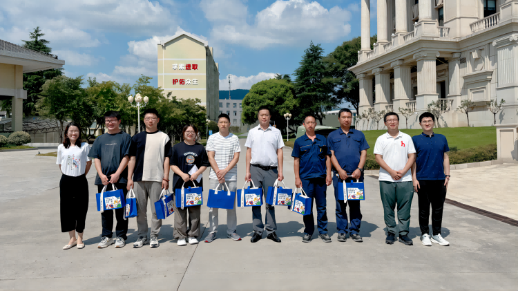 南京海陵黨支部書記李靜、黨支部副書記車越、財(cái)務(wù)部部長郭垂來代表工廠慰問奮戰(zhàn)在一線的員工,為他們送上防暑禮包。