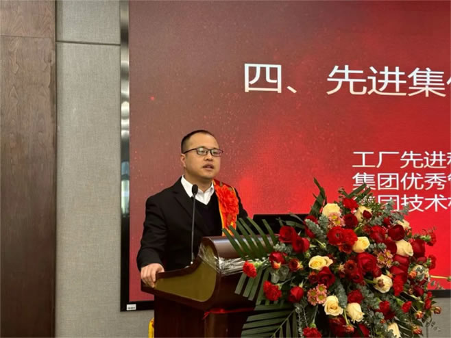 工廠先進(jìn)科室檢測(cè)中心趙旭偉主任、集團(tuán)優(yōu)秀管理干部竺望龍主任、集團(tuán)技術(shù)標(biāo)兵竇可銀作為先進(jìn)代表進(jìn)行表態(tài)發(fā)言。