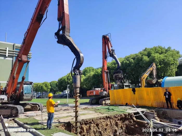 2023年的2月10日,一隊穿著嘉凡市政的施工人員來到了海陵檢測中心,隨著設(shè)備的轟鳴聲準備作業(yè)施工。然而此地東側(cè)臨河,其水泥平臺為懸挑結(jié)構(gòu),若是直接開挖,可能會有平臺結(jié)構(gòu)安全風險!