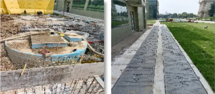 2022年6月,薛永峰開始將自己設(shè)想的畫面細化落實,項目正式立項。前期的調(diào)研設(shè)計工作是項目順利落地的保障。海陵草坪之下,是二十年來“勤懇”運行的暗管、電纜和壓力管道,盡管有圖紙可供參考,但畢竟年份久遠,實際的情況只有現(xiàn)場勘察才能確認。而施工方案的設(shè)計既要滿足海陵同步使用同步改造的需求,又需要便于后期對草品美觀度的恢復,使之符合廠區(qū)整體的環(huán)境風格。薛永峰關(guān)注著設(shè)計圖的每一個細節(jié),并對設(shè)計單位提出改進意見。項目進度穩(wěn)步推進。